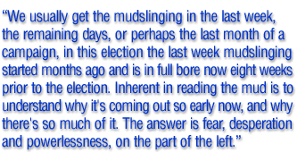 I never realized it before, but some mud is cleaner than other mud, maybe even invisible mud. The media, for example, never saw the $60 million of Democrat mud, the mega Millions of MoveOn.org mud, George Soros mud, “Americans Coming Together” mud. They never heard the ranting mud of Al Gore who accused Bush of lying and deceiving and murder and a