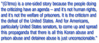 “‘He tried to insert one finger into my eye socket, then he transitioned into a fishhook maneuver,’ the guard said. ‘He got his finger into my mouth and was trying to rip my cheek off.’ After another moment, the detainee’s hands were forced down and into the cuffs. The entire incident was videotaped, as are all cell-extraction procedures under the tight protocol with which military officials have been running the Guantanamo prison amid scrutiny and harsh criticism from human rights advocates. Senior officials here, several of whom take ongoing criticism of their performance at the prison personally, eagerly described the incident as an example of ‘the other side of the story’ about Guantanamo, which they say deserves a closer look.” Col. Michael Bumgarner, the senior officer working inside the prison camp said, “It’s an extreme slap in the face to me frankly that the American public is being led to believe that we’re abusing, or mistreating detainees,” and it is a one-sided story, it’s a one-sided story because the people doing the criticizing have an agenda — and it’s not human rights, and it’s not the welfare of prisoners. It is the criticism and the defeat of the United States. And for Americans, particularly United States senators, to come up and spread this propaganda that there is all this Koran abuse and prison abuse and detainee abuse is just unconscionable. My brother, who has the syndicated column wrote a piece on weapons of mass destruction and a number of things and he got a response to it and he sent me the e-mail response, and I want to share this with you because it dovetails with this subject. Oh, I’m sorry, not weapons of mass destruction. The column was on WorldNetDaily, and that’s where my brother’s column was published, and that’s where the reader, the e-mailer, whose note I’m going to read to you saw it.