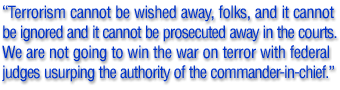 But that is, in fact, an attempt being made by the left in this country today — and we’ve tried it that way. We tried it that way throughout the nineties. You prosecute somebody you find and you convict them, and all do you is anger the terrorists who demand their release — and if you don’t release the convicted terrorists, then they promise to attack you again, and that may be an element of what’s happening here in Great Britain, too. But all of these incidental reasons — the G8 summit, the war in Iraq — miss the boat. This is an attack on Western Civilization, and it is an attack based on the belief of those who commit them that they can get away with it, and that they can continue to get away with it. You got two things you can