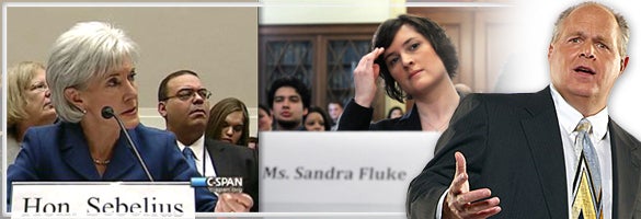 Georgetown’s a pretty expensive school. I don’t buy your argument that’s it unaffordable. Have you ever heard of the term “budget”? Have you ever heard of aspirin? Have you ever heard of saying “no”? You can’t afford it, you don’t buy it. You can’t afford it, you don’t do it. But it’s asinine to tell us this is unaffordable. And then I would ask her if she thought Hugh Hefner would be a reproductive rights activist. Is Eliot Spitzer a reproductive rights activist? Bill Clinton? How do you become one? Listen to this sound bite. Grab number 30. This morning in Washington on Capitol Hill there was a hearing of the health subcommittee of the House Energy and Commerce Committee. And the secretary of Health and Human Services, Kathleen Sebelius, testified, and Tim Murphy, a Republican from Pennsylvania, had this exchange with the secretary of Health and Human Services.