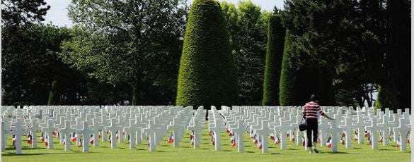 You walk through that cemetery, I’ll tell you the reaction I had, the American cemetery at Normandy. The wind is always blowing there; it’s never really still. It’s on the coast. It was cold. Even though it was sunny, it was chilly. It always is. There may be a month or two when it’s in the eighties, but it’s always chilly. The wind is always blowing. The wind is always a hawk. You always have to bundle up. But it’s nevertheless strikingly beautiful today. You walk through that cemetery, and you see these tombstones and the Stars of David, and they are aligned perfectly, and no matter which direction you look they are perfectly aligned, no matter what angle, they’re perfectly aligned. You can’t help but be moved by it.