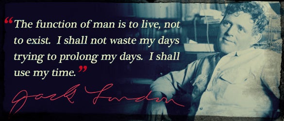I ran across a quote near the end of the book. I finished it late Saturday night. This is how it’s written in the book: “‘I think of the author and rugged individualist Jack London. Just weeks before his death in 1916, Jack London was interviewed by a San Francisco journalist who quoted him as saying, ‘I would rather be ashes than dust. I would rather that my spark should burn out in a brilliant blaze than that it should be stifled by dry-rot.