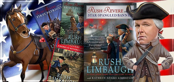 RUSH: Just a brief, brief, brief little self-indulgent reminder. This is opening day, this is release day for the fourth in the series of Rush Revere Time-Travel Adventures with Exceptional Americans series. It’s a series of children’s books on American history and the truth about it. This is Rush Revere and the Star-Spangled Banner, and it’s got some new directions from the other four books. There’s time travel back to the Constitution as it’s the written.