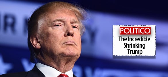 And if the only ammo you’ve got with Trump is, “He’s gonna blow it, he’s gonna fade, he’s gonna step in it, he’s not gonna last, he doesn’t really mean it, he’s gonna get out,” and that’s all you can do, then you’re not doing your job. It’s not hard to explain Trump’s success. It’s really rather easy. That’s why when I see The Politico story, “The Incredible Shrinking Trump.” In their dreams. They haven’t the slightest idea what they’re talking about. “The Incredible Shrinking Trump — The usual blustery billionaire offered a downright demure performance at the third GOP debate.”