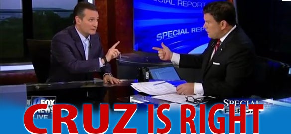 So last night on Fox Special Report with Bret Baier, Ted Cruz was invited to appear. Ted Cruz showed up because Ted Cruz goes everywhere. Ted Cruz is not afraid to answer tough questions no matter who poses them. You have to hear this, folks. If you missed this show last night, you have to hear these sound bites. Bret Baier says, “You definitely have led fights against Obamacare, against immigration, against the EPA, but Obamacare is still around, immigration’s still exactly the same.” In other words, he picked up Brit Hume’s tweet and he’s basically saying, “Yeah, you’ve led a lot of fights. You haven’t won any of them. So what do you say about that?”