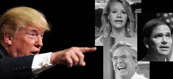 RUSH: Here is Trump talking about Rubio and Jeb this morning in Concord, New Hampshire.