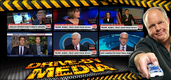 RUSH: Let’s go to the audio sound bites. The Drive-By Media obsessed with me, again, yesterday and last night. ABC’s World News Tonight, David Muir, the anchor, talking with their correspondent, Tom Llamas, about Marco Rubio. Rubio in the Saturday night debate.