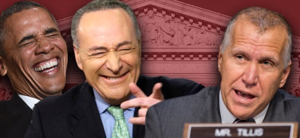 We now have Chuck Grassley (paraphrased), “Whoa, I’m rethinking this. Maybe we will conduct hearings.” And then Mel Tillis… (Nope, I take it back. That’s the country singer.) Thom Tillis, North Carolina. (paraphrased) “Oh, I think we don’t want to look like obstructionists.” And there it is, folks! There it is! (paraphrased) “We don’t want to look like obstructionists.” That’s translated: “We have to cross the aisle on this. We have to show the people we can help make Washington work.