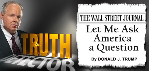 RUSH: Trump has this op-ed in the — this is gonna be tough when I get to that. Turmp has an op-ed in the Wall Street Journal. I have it in my formerly nicotine-stained fingers here.