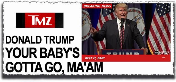 RUSH: Apparently the newest outrage the media’s hyping here is that Trump has asked a lady with a crying baby to leave his rally. Here is the first sound bite.