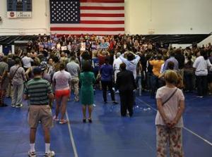 RUSH: Well, the next call I wanted to take the guy’s gone. Columbus, Ohio. It was time to take the question. His point is Trump has such a huge following, there are thousands and thousands of people at his appearances, and not only are there thousands and thousands and thousands of people, the anti-Trump people show up and try to agitate. I mean, Trump is huge wherever he goes. How can the polls be right with all these people out there?