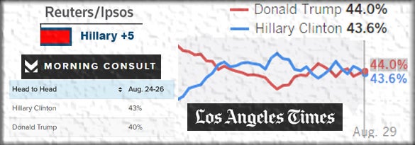The LA Times/USC poll, the daily poll that they publish at midnight every night, sample of 3,000 people, 400 of whom are identical every poll, the same 400 are polled every day with 2,600 different people added every day, and it’s a wash now, almost a dead heat. This was the poll that Trump was up seven before the Democrat convention. Then the Democrat convention happened, Hillary got a bounce up to I think six and a half, and now it’s back down to dead heat. So the politics of this continues to confound people who continue to look at this through the standard political prism, which I continue to maintain is a distortion and not predictable per se as to Trump and his fortunes.