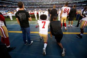 Now, our last caller, clearly a lot of people believe that when you hear the national anthem, see the flag, you stand up because it is to honor America. In fact, many public address announcers ask you to stand and honor America while the playing of the national anthem. Now, the people that are sitting down or taking a knee, let me just remind you what Kaepernick said, Colin Kaepernick of the San Francisco 49’ers.