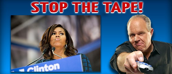 RUSH: RUSH: I want to go back to this Michelle Obama sound bite, just the first one, not the whole thing, but listen to the beginning of this here.