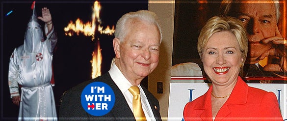 I’m always amazed by this because it’s the Democrats that have ties to the KKK, and they elect them. The Democrats elected a former Grand Kleagle from the Ku Klux Klan, a man by the name of Robert “Sheets” Byrd from West Virginia, where practically every public building and highway is named after the guy. Did you know Hugo Black, a well-known Supreme Court justice? You know he had ties to the KKK? These are all Democrats. The Democrats were — the Ku Klux Klan, ladies and gentlemen…
