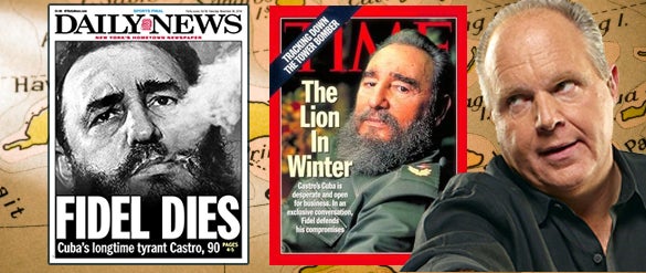 RUSH: “Fidel Castro forced nearly 20 percent of his people into exile, and prompted thousands to meet their deaths at sea, unseen and uncounted, while fleeing from him in crude vessels. He claimed all property for himself and his henchmen, strangled food production and impoverished the vast majority of his people.”