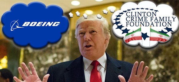 So there’s a possibility here that Trump is really irritated at Boeing for helping facilitate the Iranian nuclear deal — or not. I mean, I’m throwing out possibilities here. But I’m telling you, something is going on. Here’s the story of Boeing and the Clintons. Ready for this? In 2010, two months after Hillary went to Moscow to broker a $3.7 billion trade deal with Russia, “Boeing donated $900,000 to the Clinton Foundation… Then in July 2012, just months after the State Department helped it secure major deals in Indonesia and Saudi Arabia, Boeing said it wanted to sponsor a speech by Bill Clinton…