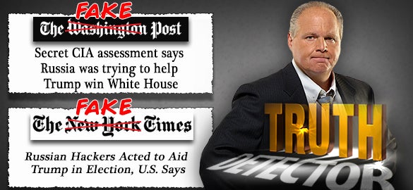 RUSH: McConnell and Ryan. It’s like I said yesterday: Folks, I don’t want to be trapped by this narrative here of the Russians hacking the election and that’s why Hillary lost and Trump won. I resent this. I told you yesterday: This whole thing is fake news. Everything about it is fake news. In fact, I’m gonna tell you what I believe. I believe that whoever leaked this is not the Russians. I think it’s an insider. I don’t think this is the result of a Russian hack whatsoever.