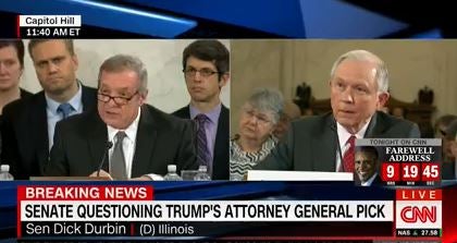 RUSH: Bingo! Bomb dropped. Explosion on the top of Durbin’s head. Sessions took him to school. Sessions didn’t cower. Sessions didn’t beg to be understood. “No, no, Senator! I do care about the disadvantaged, and I do care about the poor, and I do care about minorities, and I would do everything I…” He didn’t do that at all. He said, “No, you’re dead wrong about this question. That’s not my job.