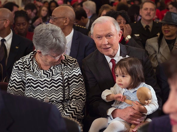 So I guess it’s okay for people on the left to make fun of minorities. It’s okay for people on the left to mock minorities and humiliate and insult them and laugh at them and make fun of them, but it’s not okay for anybody else to do it. Here’s what happened. Senator Sessions appears today at the Senate Judiciary Committee prepared to make a statement, give testimony. He’s got his family there. And, you know, we’ve learned some tricks of the trade. Sessions is sitting there with one of his grandchildren on his lap. I said, “We’re learning for the children.”