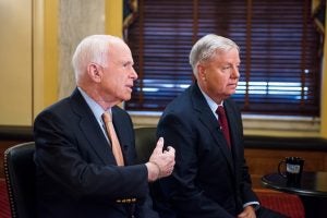 No, McCain hasn’t said anything, but he may as well have — Lindsey Graham speaks. Six and one half dozen or the other. The press briefing is underway. It looks like they got Mnuchin up there speaking, Treasury secretary, so it’s gonna be a while before the sharks get out of the cage and start taking their chunk bites out of Spicer. Anyway, I’m really sorry, Sean, to have to impart that information to you, ’cause you’re right. I guarantee you that you had people standing up and cheering when you were expressing your desires of the Republicans and why you voted for Trump. Does any of this — are you still there, by the way?