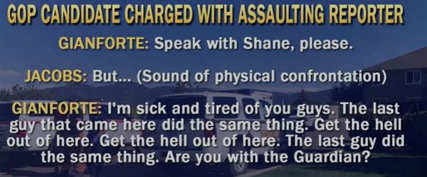 “Montana Sheriff’s Department Investigating After GOP Candidate Body Slammed a Reporter.”