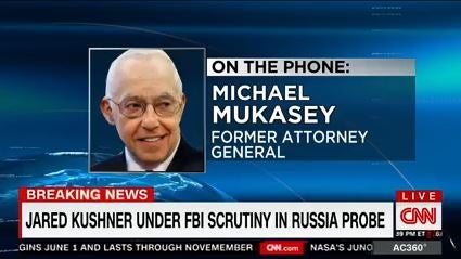 Backing this up, audio sound bites, last night, CNN, Anderson Cooper 95. He’s talking with the former attorney general, Michael Mukasey, about reports that Kushner has become a focus in the Russia election. Anderson Cooper says in his question, “Jared Kushner is not a suspect here. He is not a person of interest. He is just, we’re told, a focus. They want to speak to him because it seems like he was basically a witness. What do you make of this, Attorney General Mukasey?”