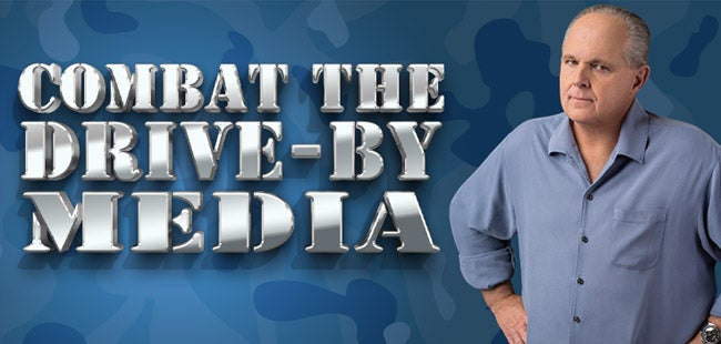 RUSH: Having more fun than a human being should be allowed to have. El Rushbo illustrating one of the most important, paramount teachable moments in the history of the EIB Network.