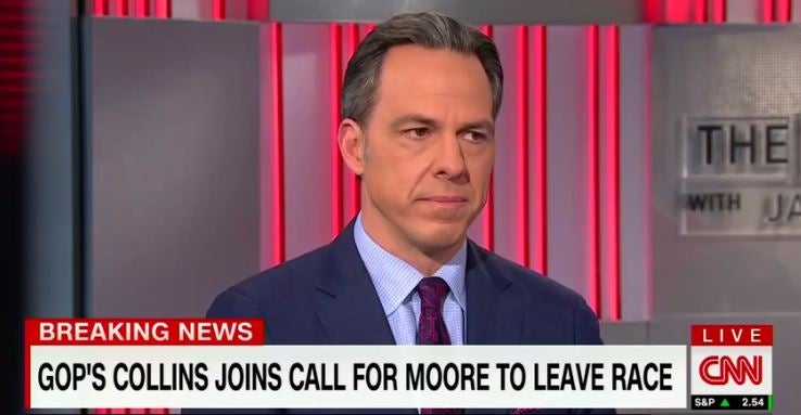 TAPPER: President Trump has been abroad. But it is, uh, a tough place for him to be because even if he wants to distance himself, uhh, from Roy Moore and even if he finds this, uhh, reprehensible, then, um, the question becomes, “Well, why believe these five women on the record and not these 15 on the record who will make these allegations about you, Mr. President?”