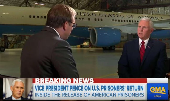 They don’t understand Kim Jong-un giving up these hostages. They don’t understand Kim Jong-un wanted to talk about potentially denuclearization. They don’t understand any of it. And look at this next bite. Here’s how they’re dealing with it. This is absurd. This is Good Morning America today and Jonathan Karl’s interview with Mike Pence. Here he’s talking to George Stephanopoulos after the interview with Pence.