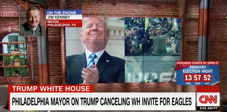 RUSH: Here is the mayor of Philadelphia. His name is Jim Kenney. He was on CNN today, is a big hero. Philadelphia is gonna have a ceremony today for the Eagles since they’re not gonna go to the White House. John Berman was talking to the mayor, Jim Kenney. Question: “What statement do you think the president’s making by disinviting the dozen or so players that were gonna go?”