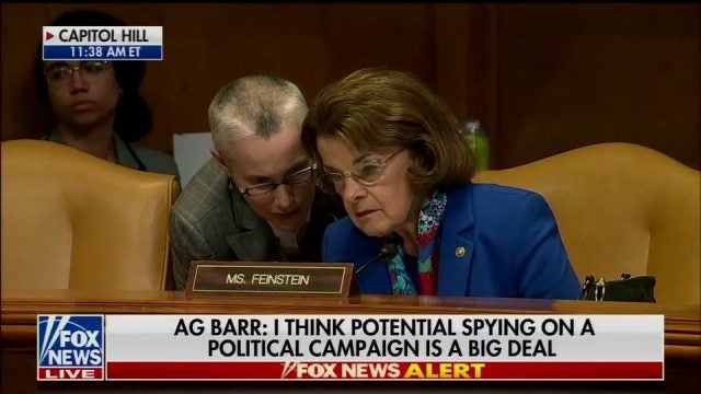 Fox cut to Feinstein and a staffer jumped up to whisper in her ear. He was probably telling her which ChiCom spy Graham was talking about. Now, imagine Senator Jeanne Shaheen’s question. Stop and think about her question for a second. She really asked the attorney general of the United States — she really asked him — why he felt the need to investigate when the FBI apparently used phony information to get a FISA warrant to spy on a political campaign.