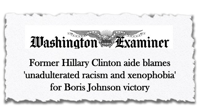 RUSH: “Former Hillary Clinton Aide Blames ‘Unadulterated Racism and Xenophobia’ for Boris Johnson Victory.” Folks, we have exposed the American left. It’s now just a matter of the American people absorbing it. They really have run out of any substantive objection. I mean, if this is it, one of Hillary Clinton’s former aides reacted to Boris Johnson, the Conservative Party victory in the U.K. election by tying racism and bigotry and homophobia. And that’s it.