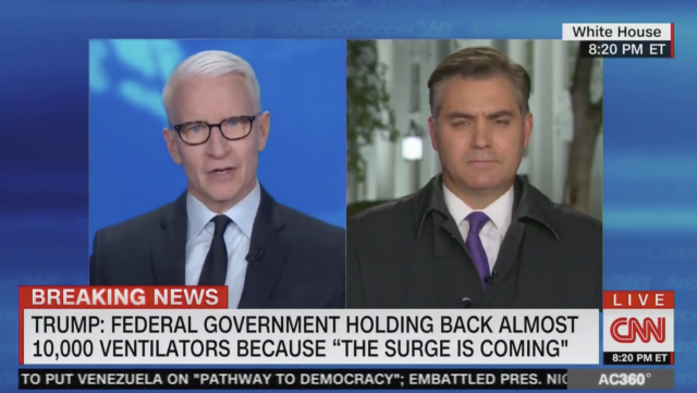 ACOSTA: People might say, “Well, uh, you know, I can’t… I can’t ever trust him. He’s a phony,” and so on. People may say that. But Anderson, I have to tell you. Sitting in that room that close to him, I’ve never seen President Trump like this, and I think to some extent he is — he is scared right now, Anderson. And we could all feel that in the room. People may not believe the president when he says any of this, and I’ve been — you and I have been — you know, pretty critical of him from time to time. This was a different Donald Trump tonight. I think he gets it, Anderson.