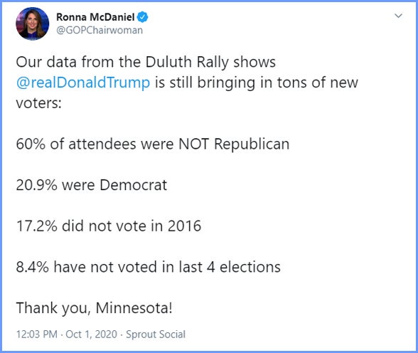Tweet Ronna McDaniel Oct 1, 2020 ARCHIVES CALENDAR December 2025 M T W T F S S 1234567 891011121314 15161718192021 22232425262728 293031 « Feb