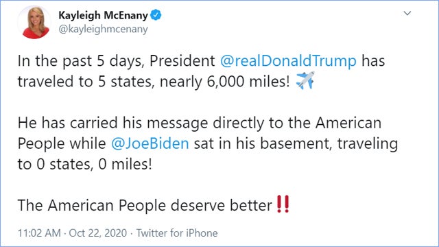 APP 102220 McEnany Tweet Oct 22, 2020 ARCHIVES CALENDAR December 2025 M T W T F S S 1234567 891011121314 15161718192021 22232425262728 293031 « Feb