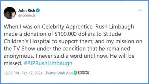 APP TWEET Rush JOHN RICH 021821 Feb 18, 2021 ARCHIVES CALENDAR December 2025 M T W T F S S 1234567 891011121314 15161718192021 22232425262728 293031 « Feb